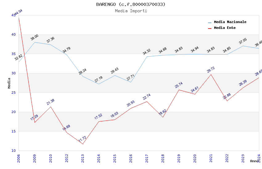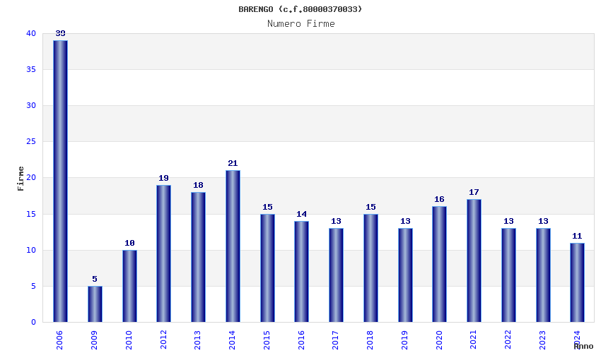 | Anno | Firme | Importi | Media | Naz. | Reg. | Prov. | Comu. |