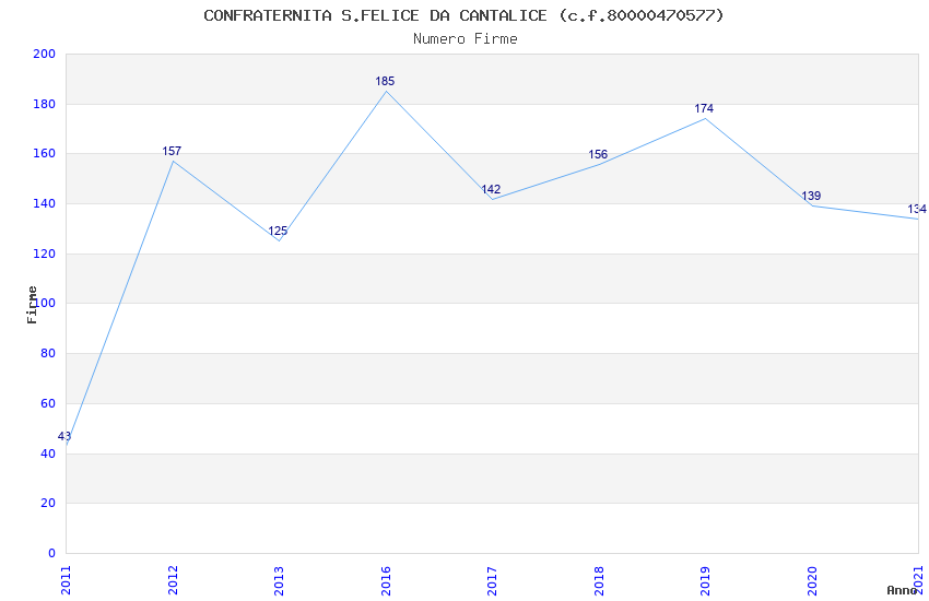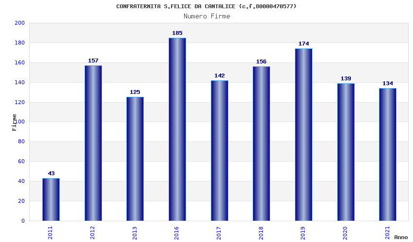 | Anno | Firme | Importi | Media | Naz. | Reg. | Prov. | Comu. |