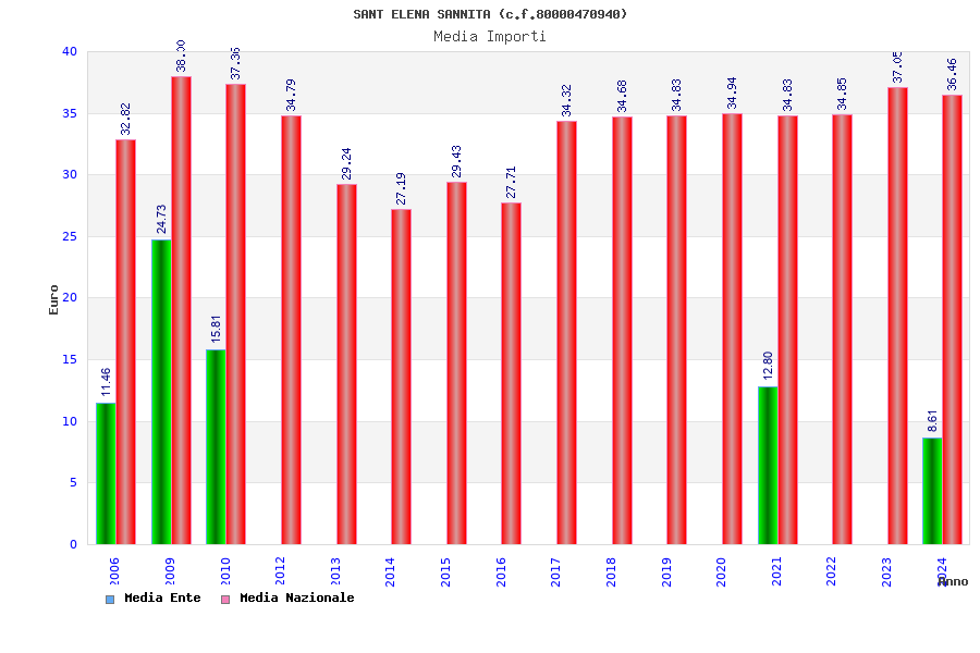 | Anno | Firme | Importi | Media | Naz. | Reg. | Prov. | Comu. |