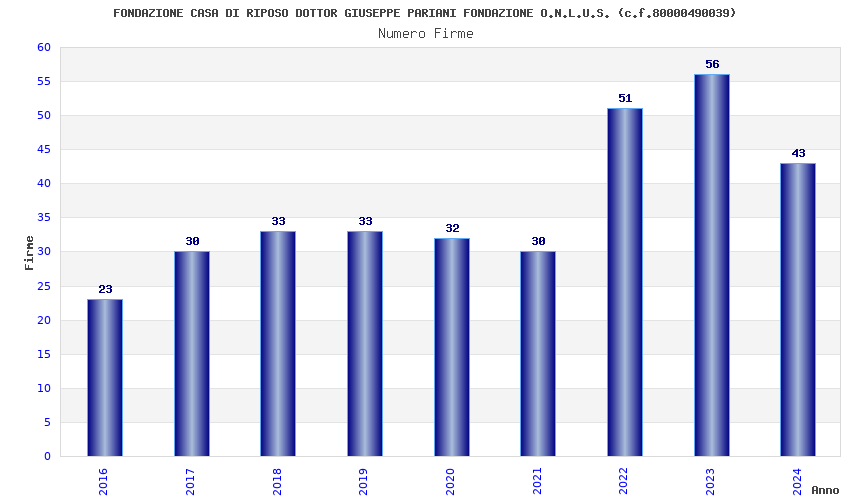 | Anno | Firme | Importi | Media | Naz. | Reg. | Prov. | Comu. |