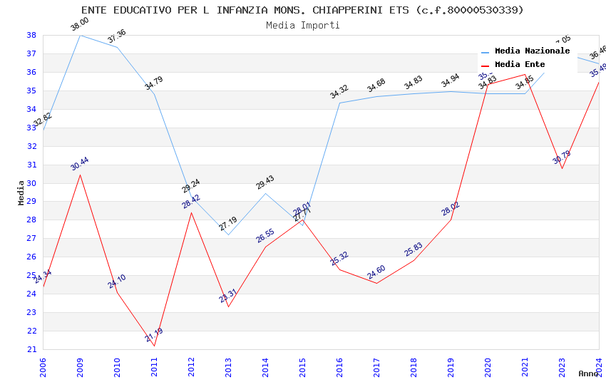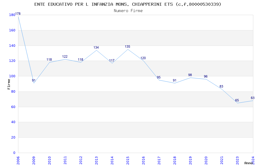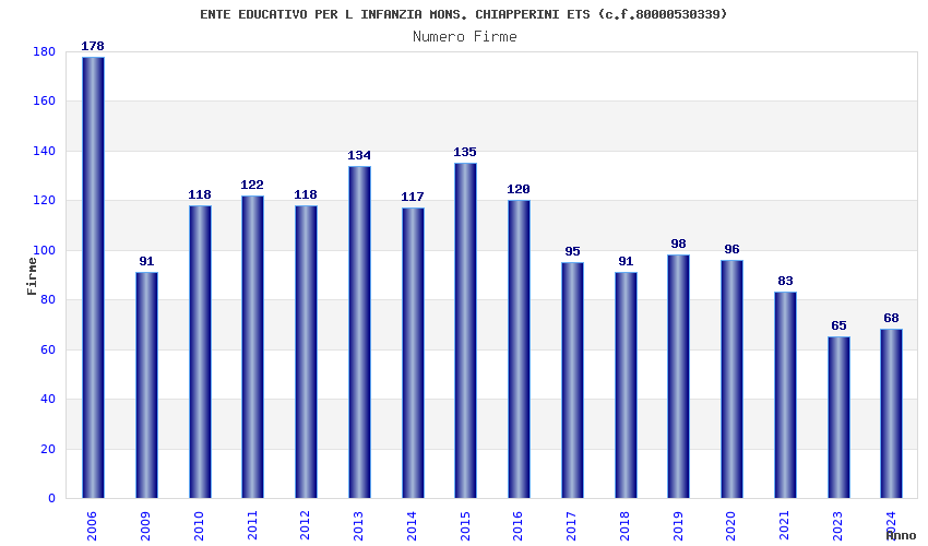 | Anno | Firme | Importi | Media | Naz. | Reg. | Prov. | Comu. |