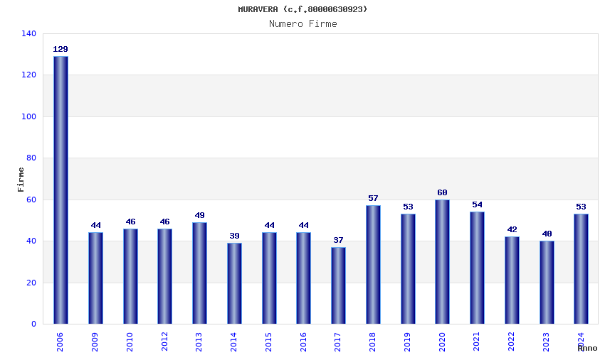 | Anno | Firme | Importi | Media | Naz. | Reg. | Prov. | Comu. |
