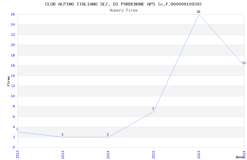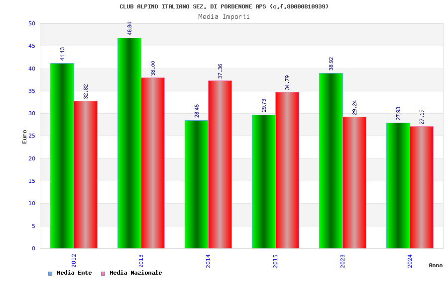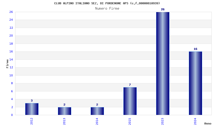 | Anno | Firme | Importi | Media | Naz. | Reg. | Prov. | Comu. |