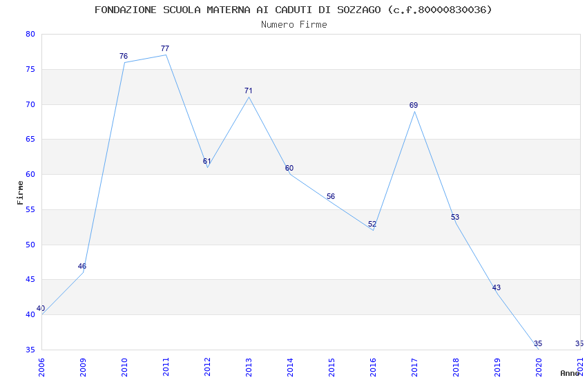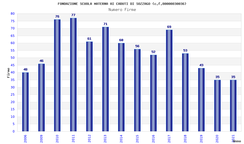 | Anno | Firme | Importi | Media | Naz. | Reg. | Prov. | Comu. |