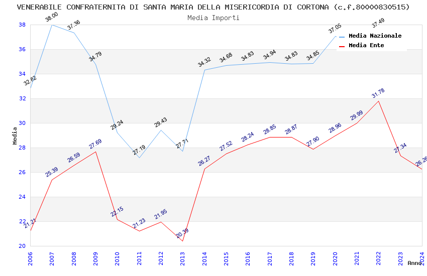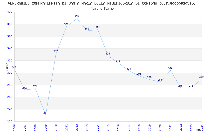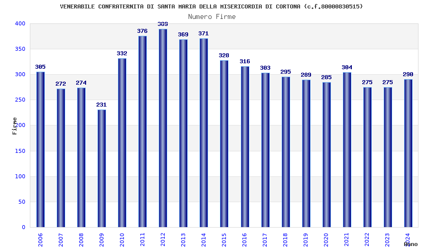 | Anno | Firme | Importi | Media | Naz. | Reg. | Prov. | Comu. |