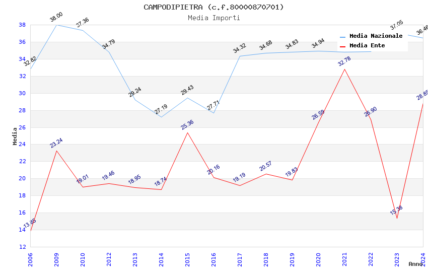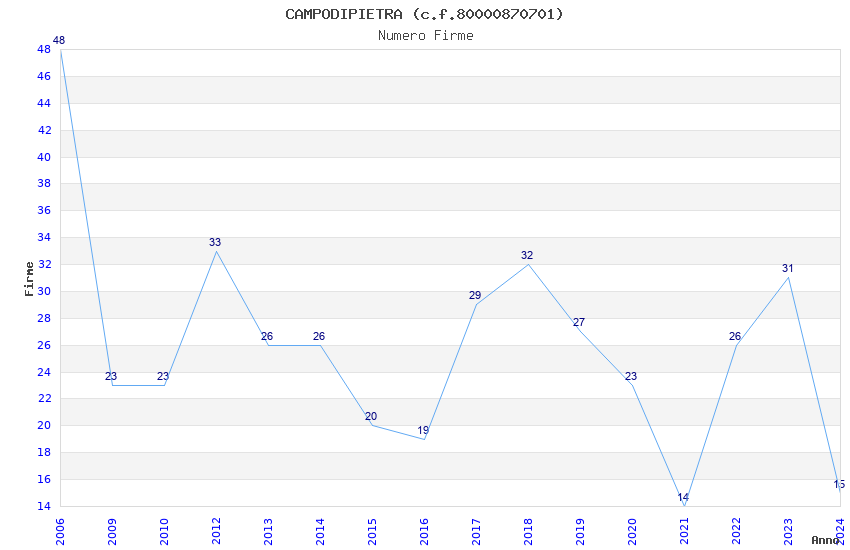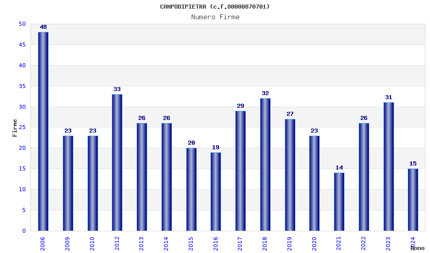 | Anno | Firme | Importi | Media | Naz. | Reg. | Prov. | Comu. |