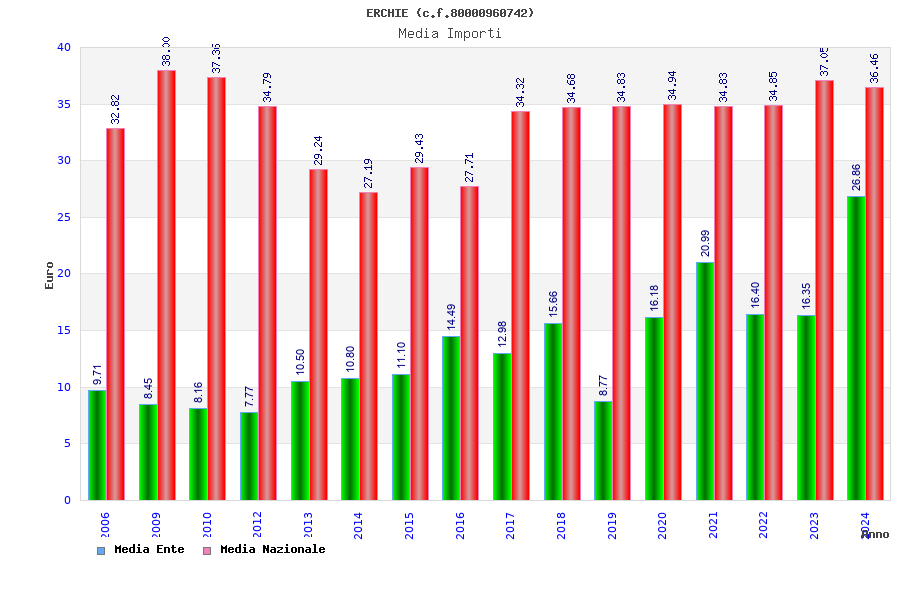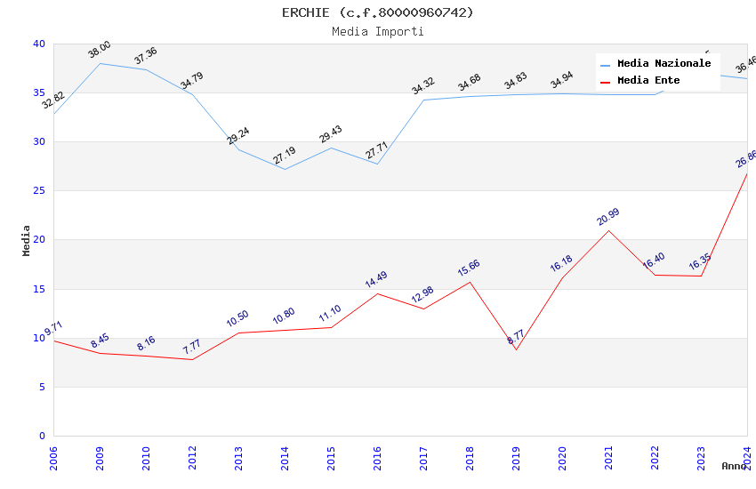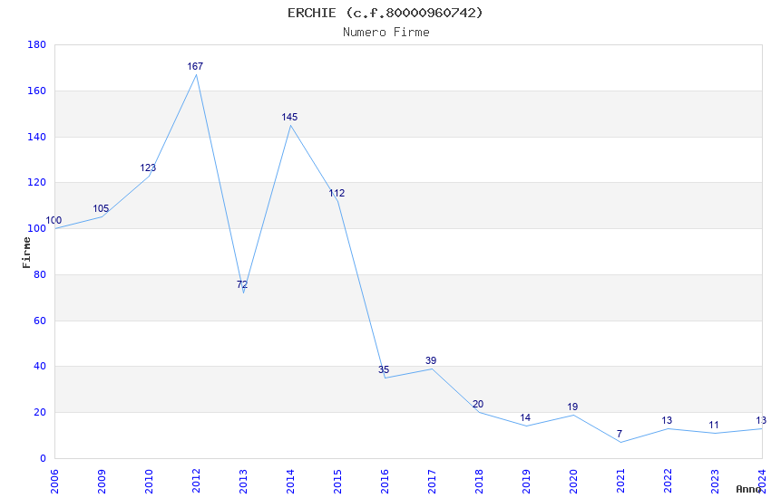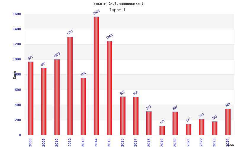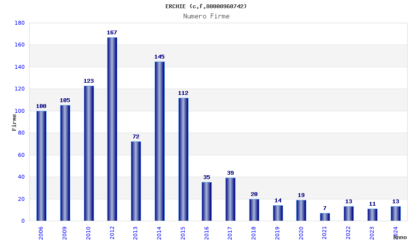 | Anno | Firme | Importi | Media | Naz. | Reg. | Prov. | Comu. |