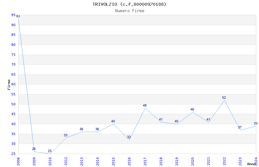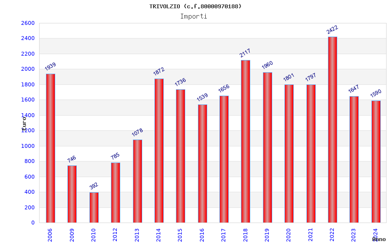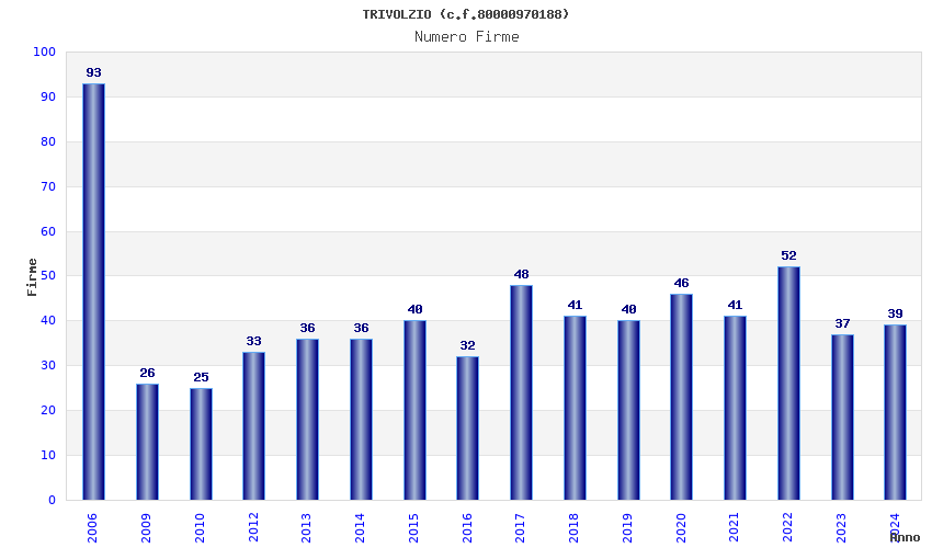 | Anno | Firme | Importi | Media | Naz. | Reg. | Prov. | Comu. |