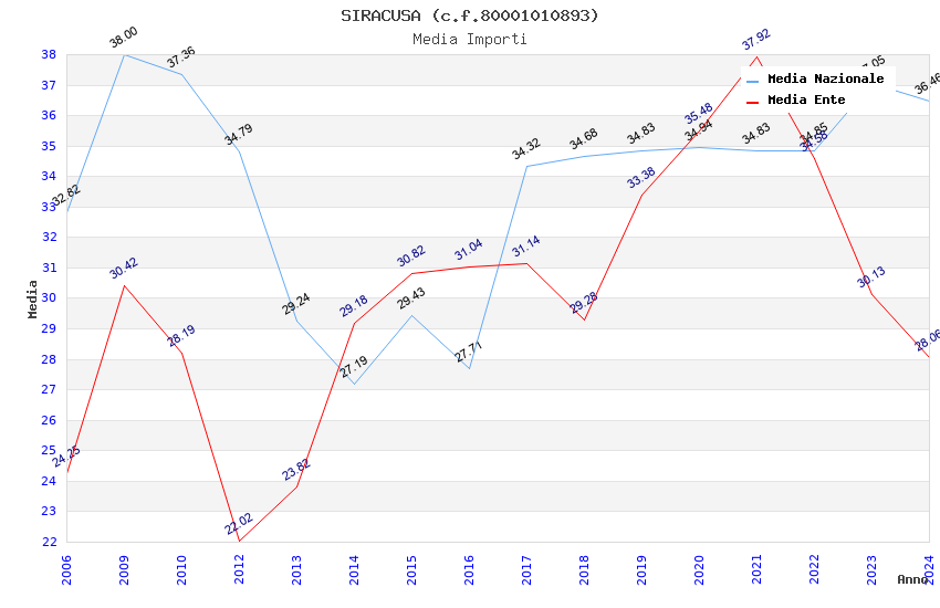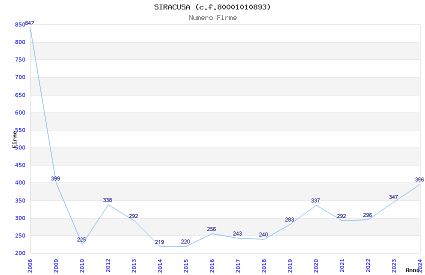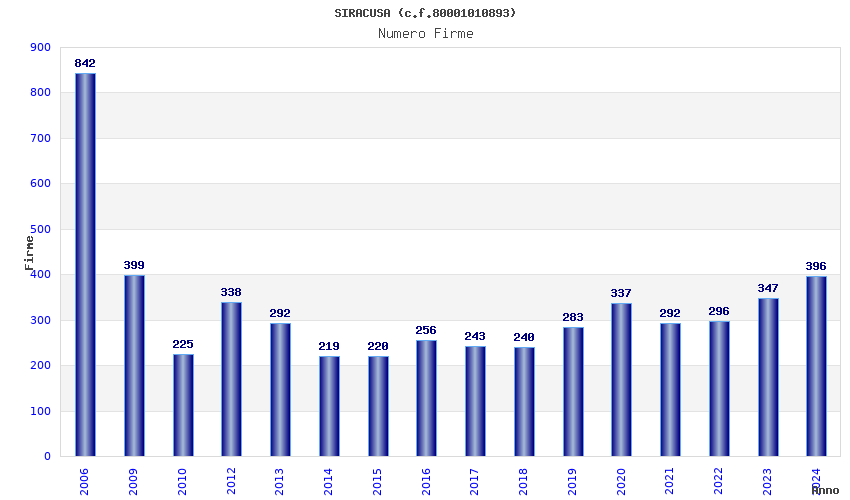 | Anno | Firme | Importi | Media | Naz. | Reg. | Prov. | Comu. |