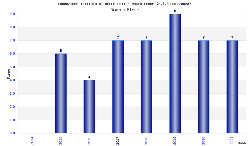 | Anno | Firme | Importi | Media | Naz. | Reg. | Prov. | Comu. |