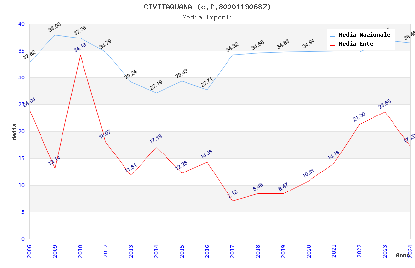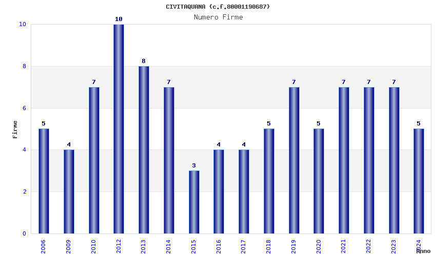 | Anno | Firme | Importi | Media | Naz. | Reg. | Prov. | Comu. |