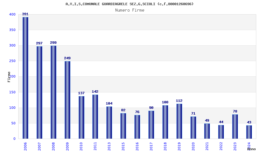 | Anno | Firme | Importi | Media | Naz. | Reg. | Prov. | Comu. |