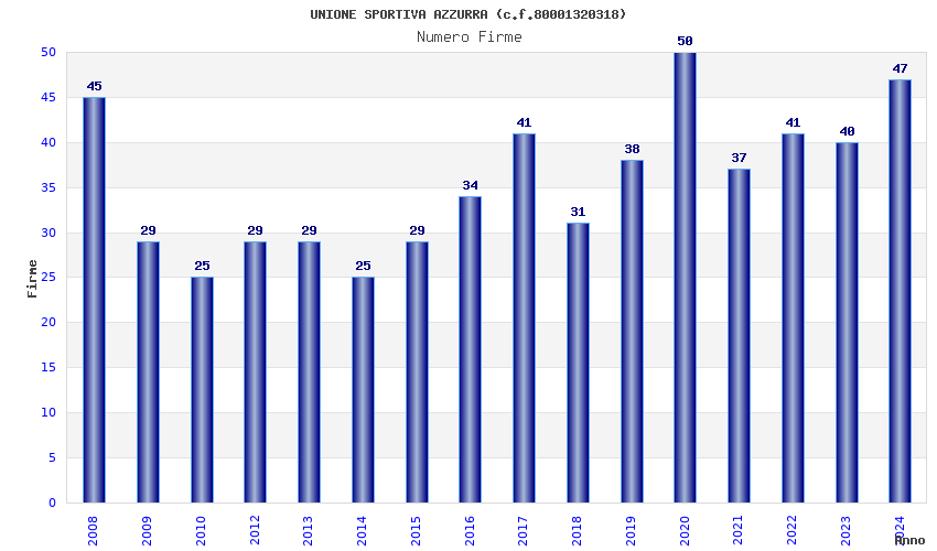 Anno Firme Importi Media Naz. Reg. Prov. Comu.