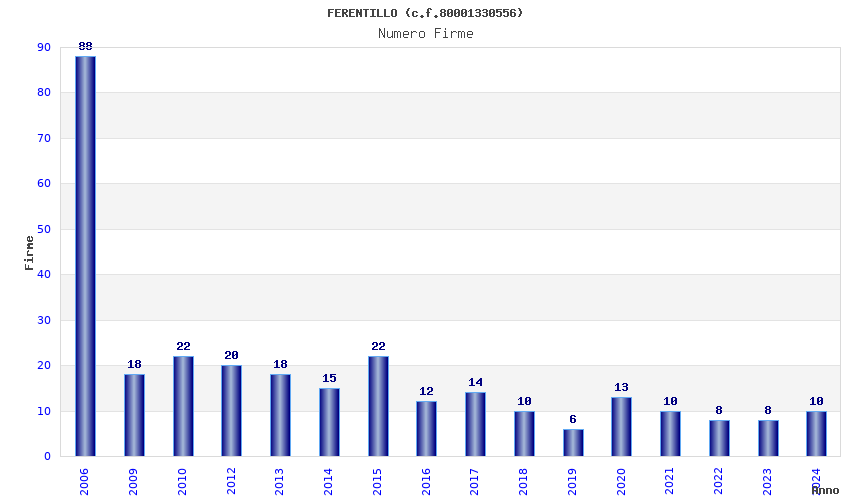 | Anno | Firme | Importi | Media | Naz. | Reg. | Prov. | Comu. |