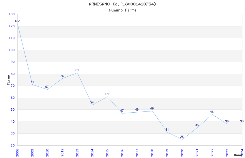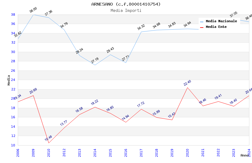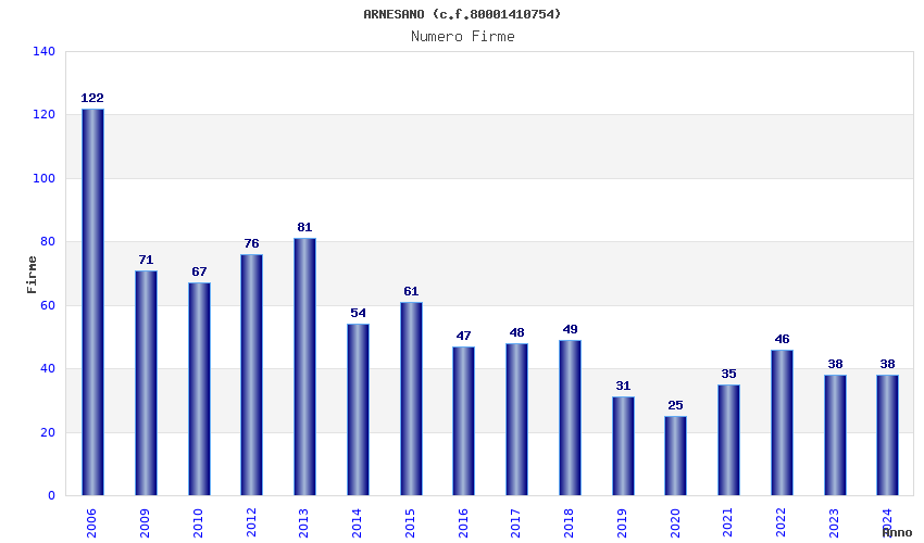 | Anno | Firme | Importi | Media | Naz. | Reg. | Prov. | Comu. |