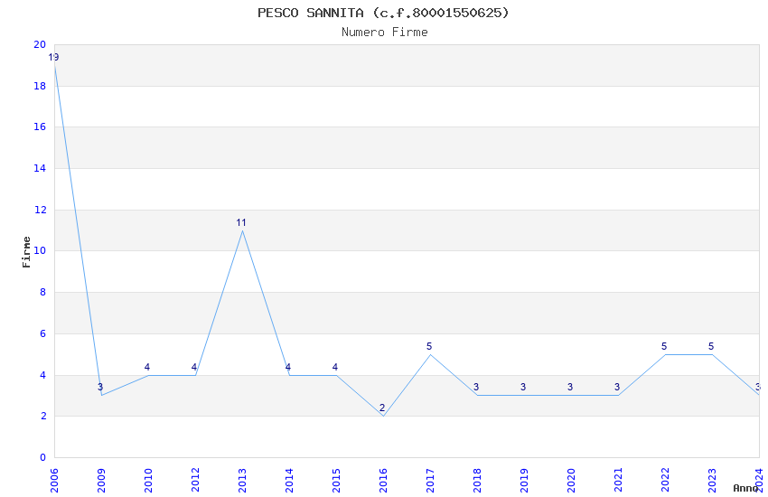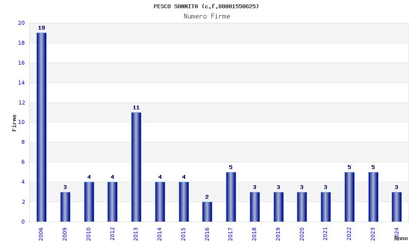 | Anno | Firme | Importi | Media | Naz. | Reg. | Prov. | Comu. |