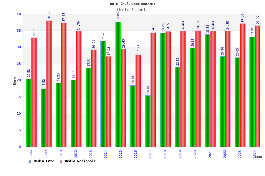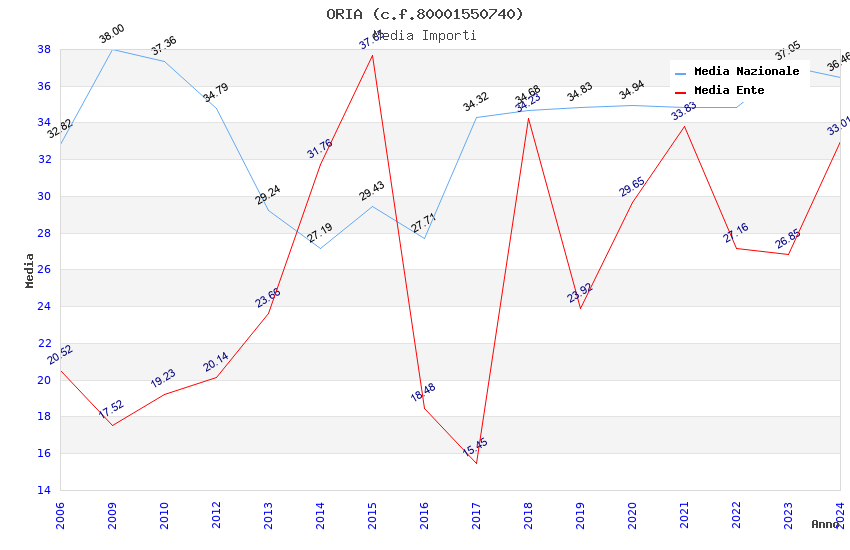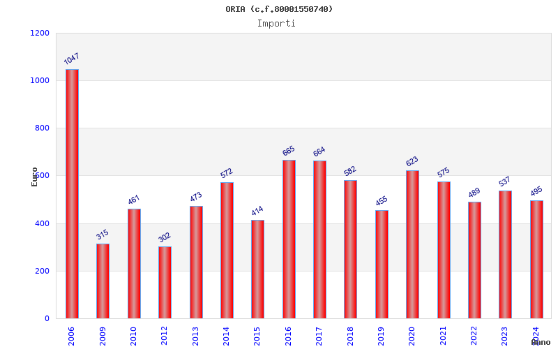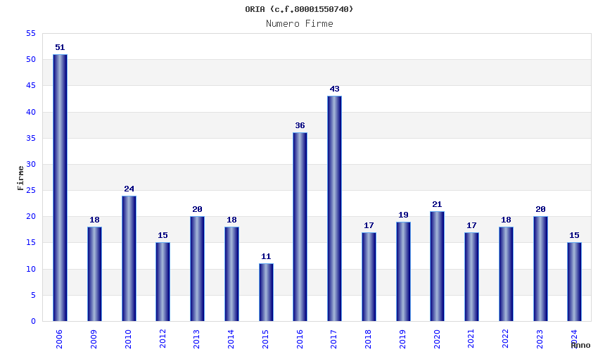 | Anno | Firme | Importi | Media | Naz. | Reg. | Prov. | Comu. |