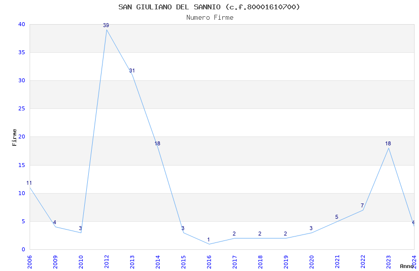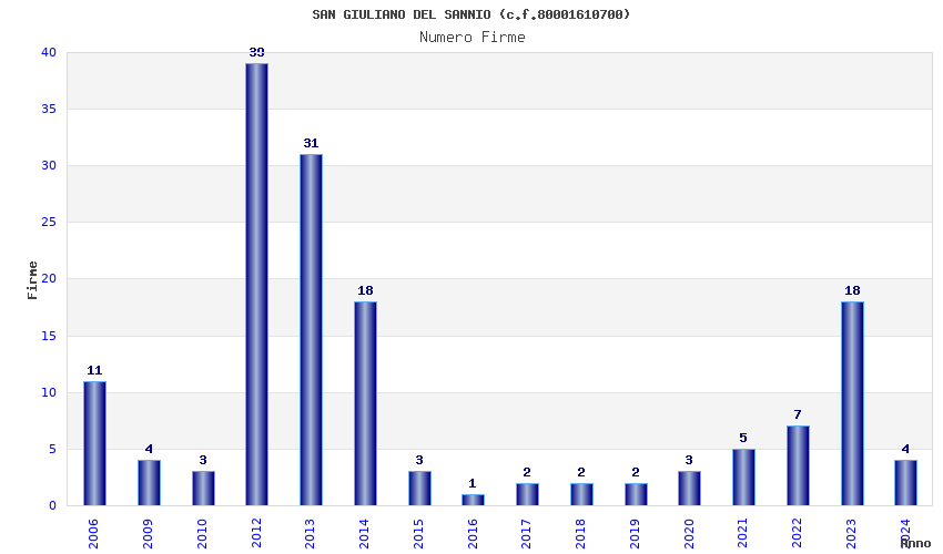 | Anno | Firme | Importi | Media | Naz. | Reg. | Prov. | Comu. |