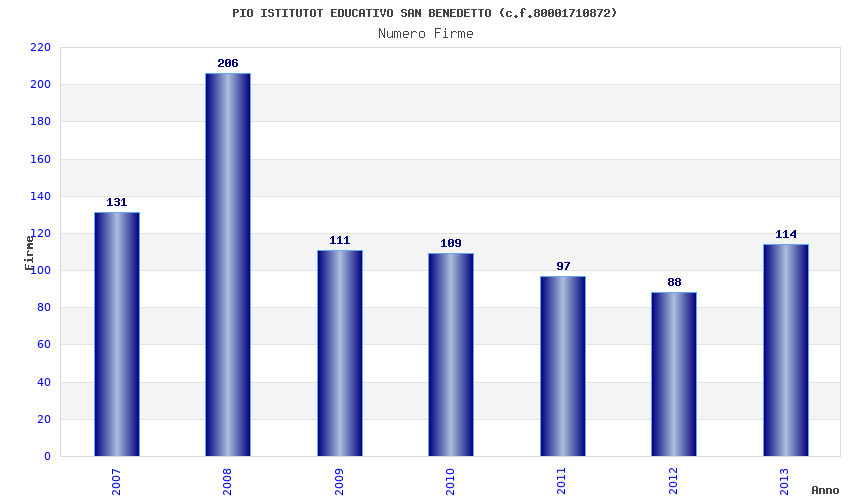 | Anno | Firme | Importi | Media | Naz. | Reg. | Prov. | Comu. |