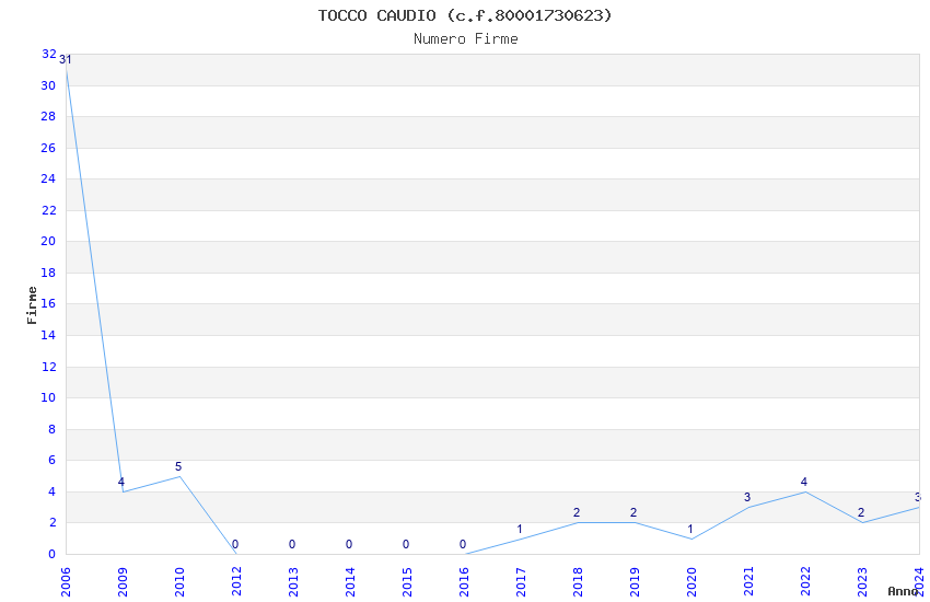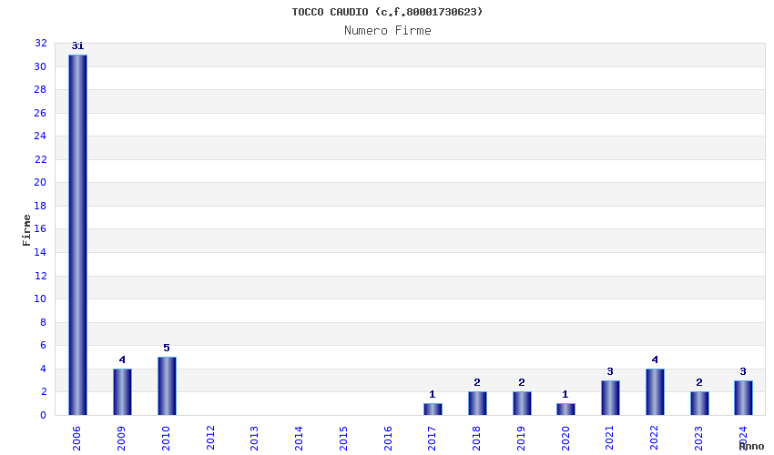 | Anno | Firme | Importi | Media | Naz. | Reg. | Prov. | Comu. |