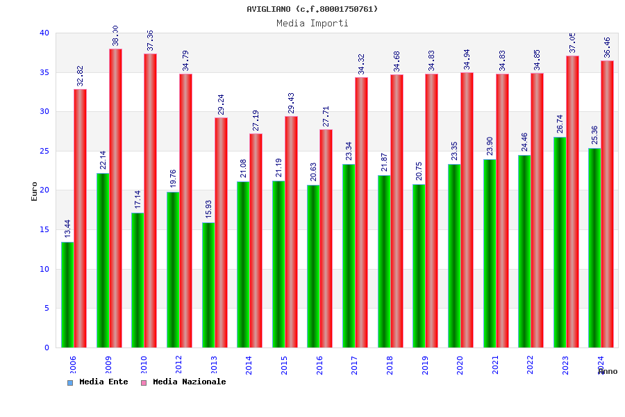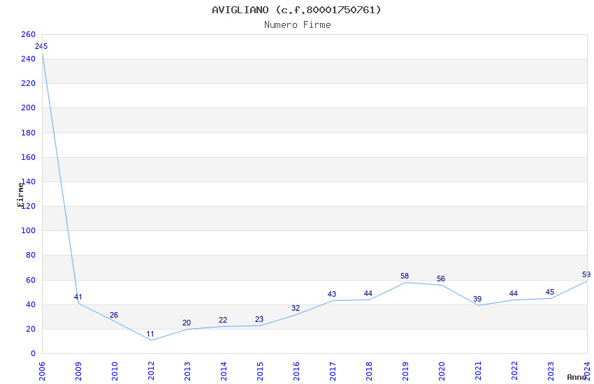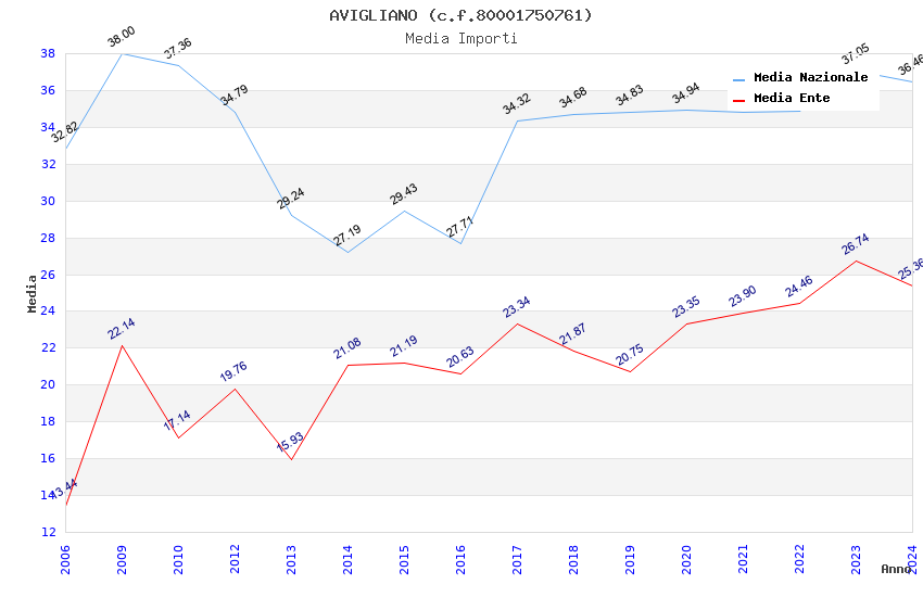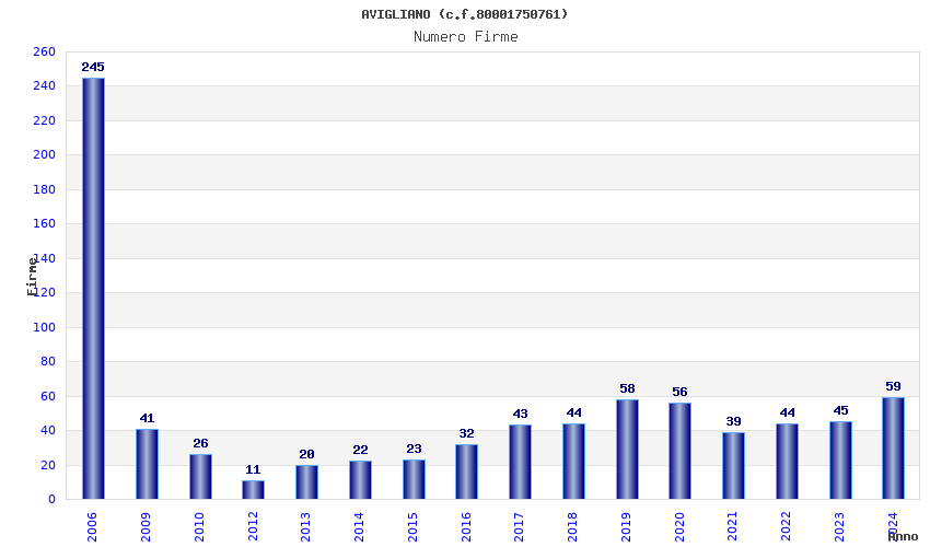 | Anno | Firme | Importi | Media | Naz. | Reg. | Prov. | Comu. |