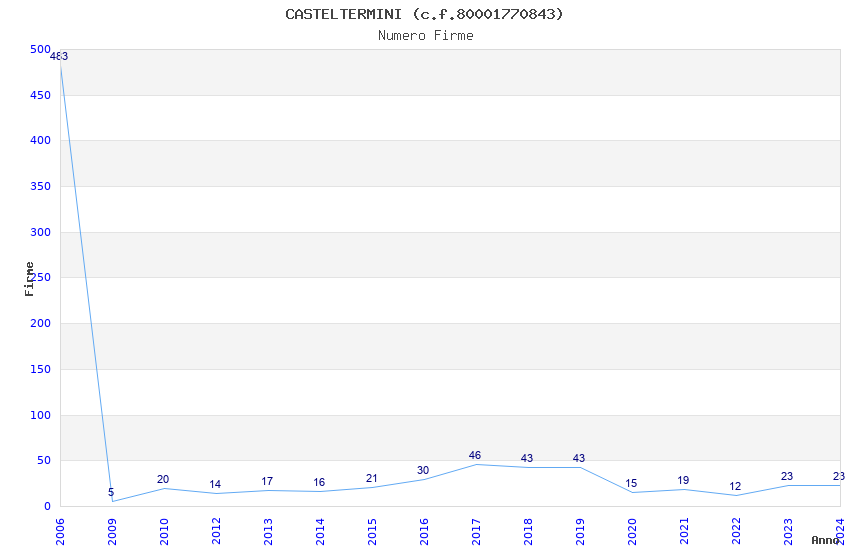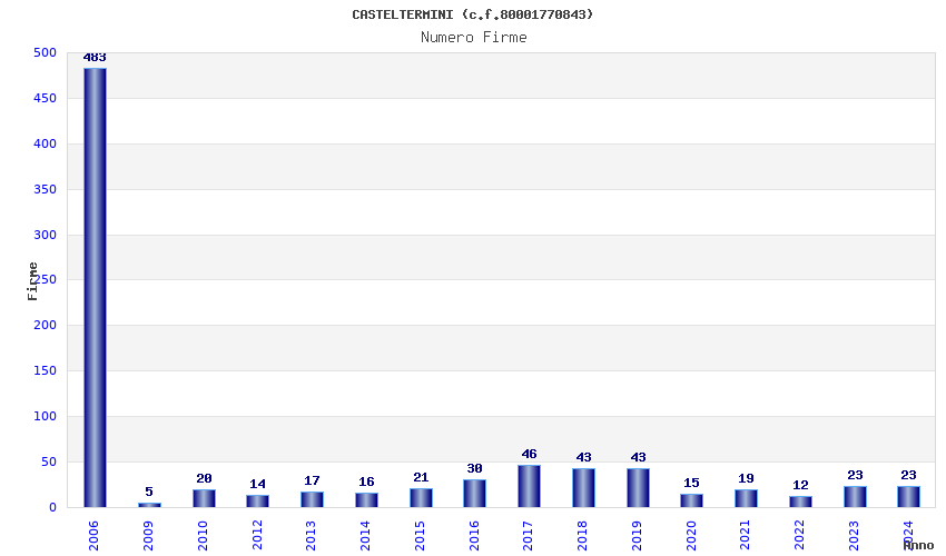 | Anno | Firme | Importi | Media | Naz. | Reg. | Prov. | Comu. |