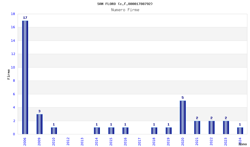 | Anno | Firme | Importi | Media | Naz. | Reg. | Prov. | Comu. |