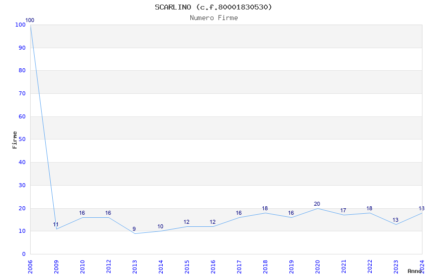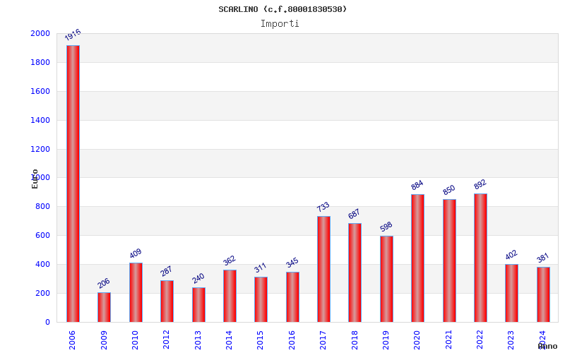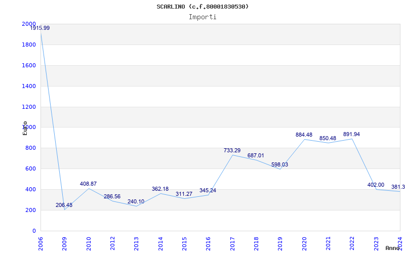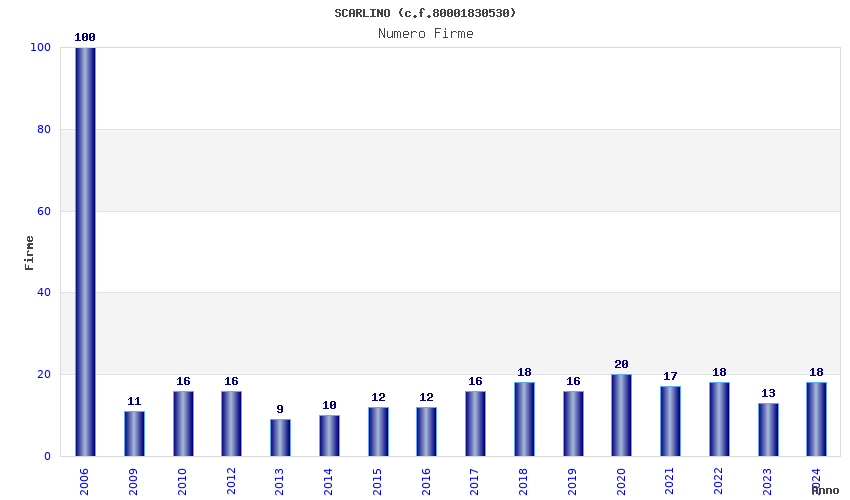 | Anno | Firme | Importi | Media | Naz. | Reg. | Prov. | Comu. |