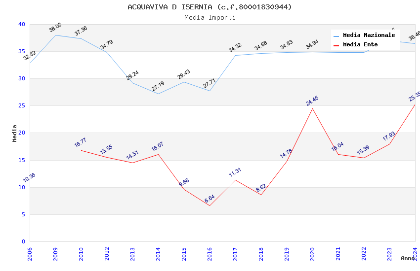 | Anno | Firme | Importi | Media | Naz. | Reg. | Prov. | Comu. |