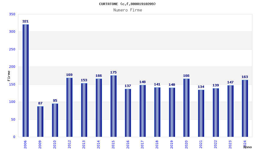 Anno Firme Importi Media Naz. Reg. Prov. Comu.
