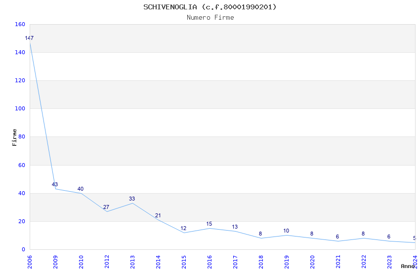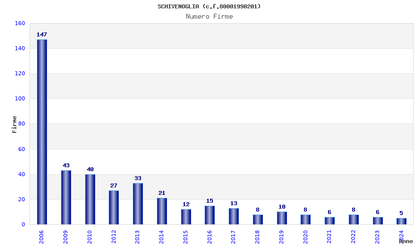 | Anno | Firme | Importi | Media | Naz. | Reg. | Prov. | Comu. |