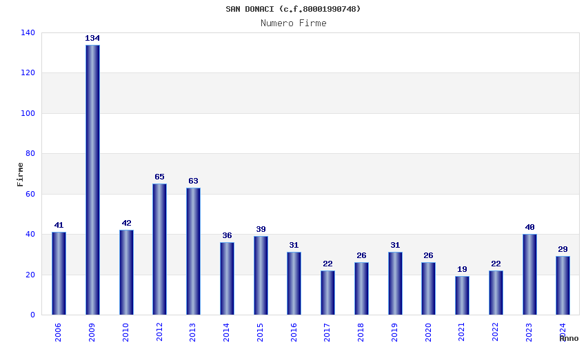 Anno Firme Importi Media Naz. Reg. Prov. Comu.