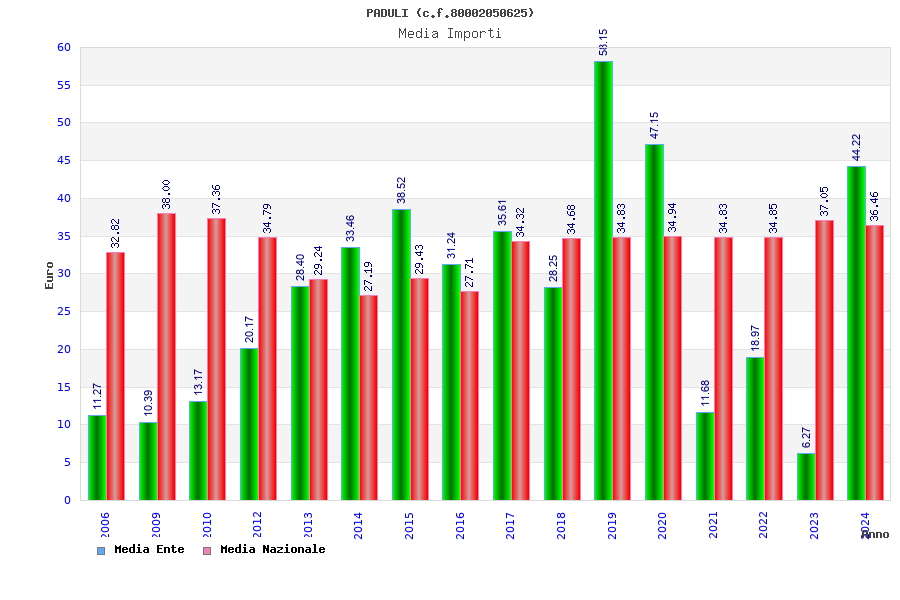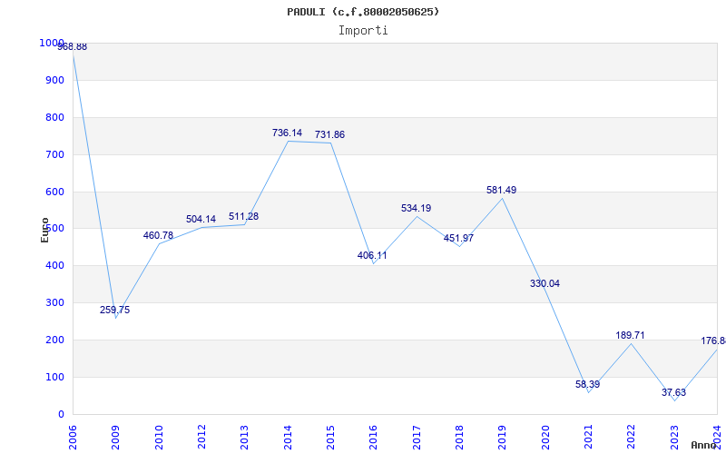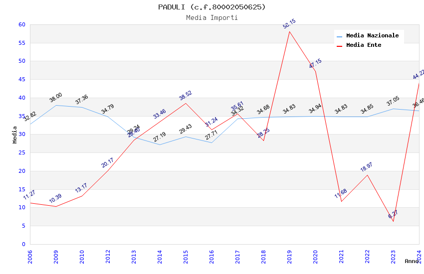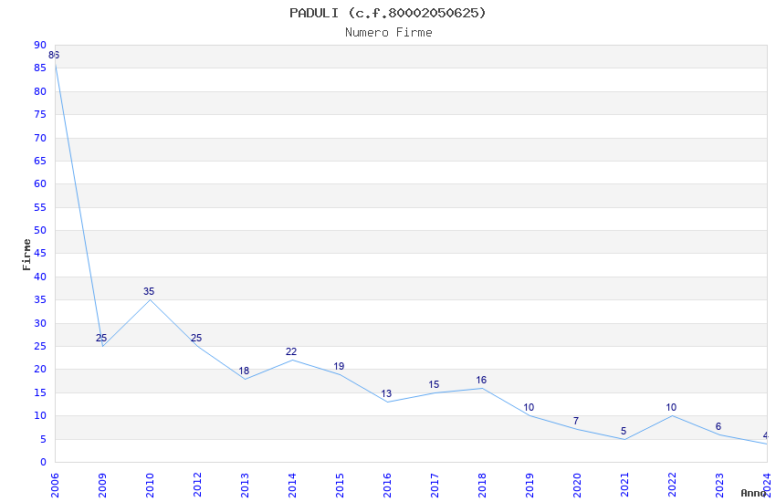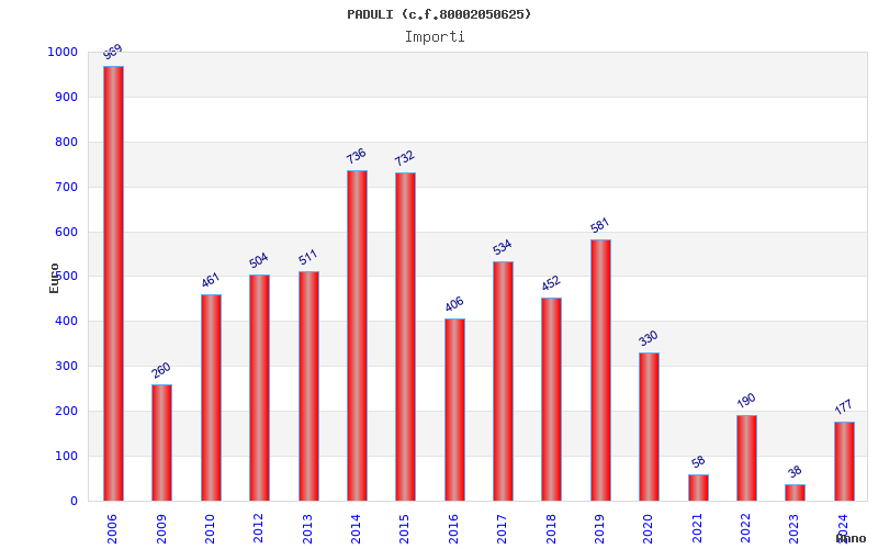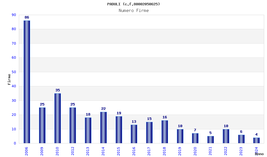 | Anno | Firme | Importi | Media | Naz. | Reg. | Prov. | Comu. |