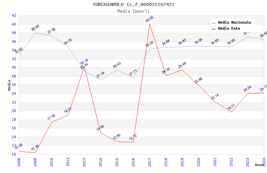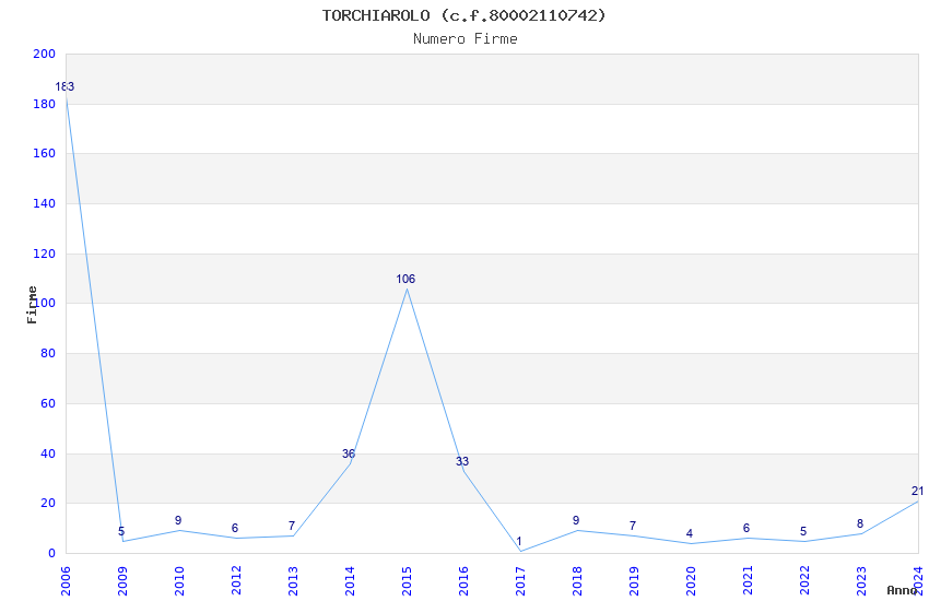 | Anno | Firme | Importi | Media | Naz. | Reg. | Prov. | Comu. |
