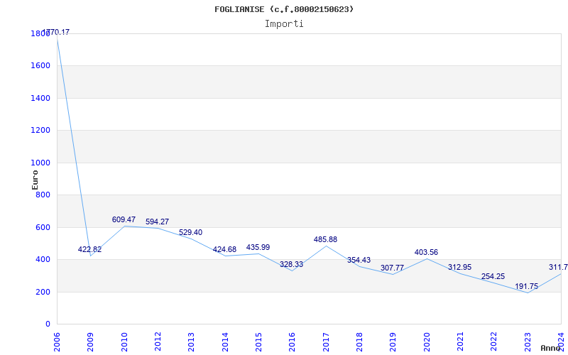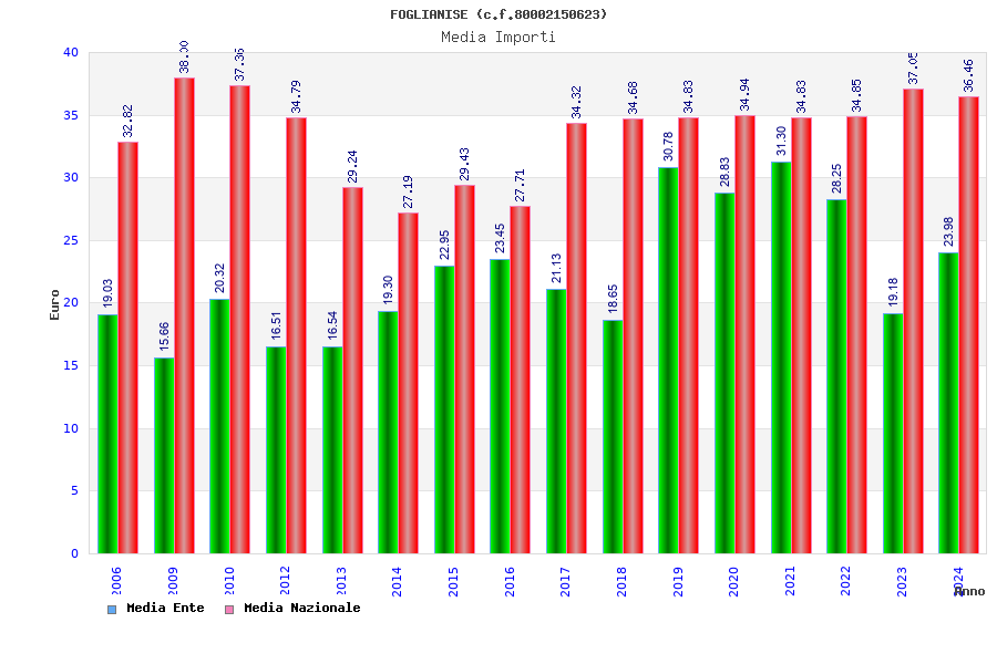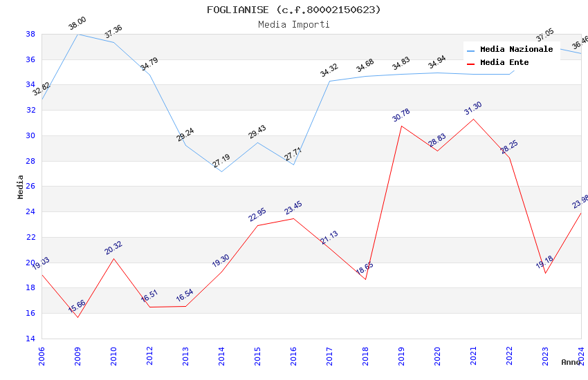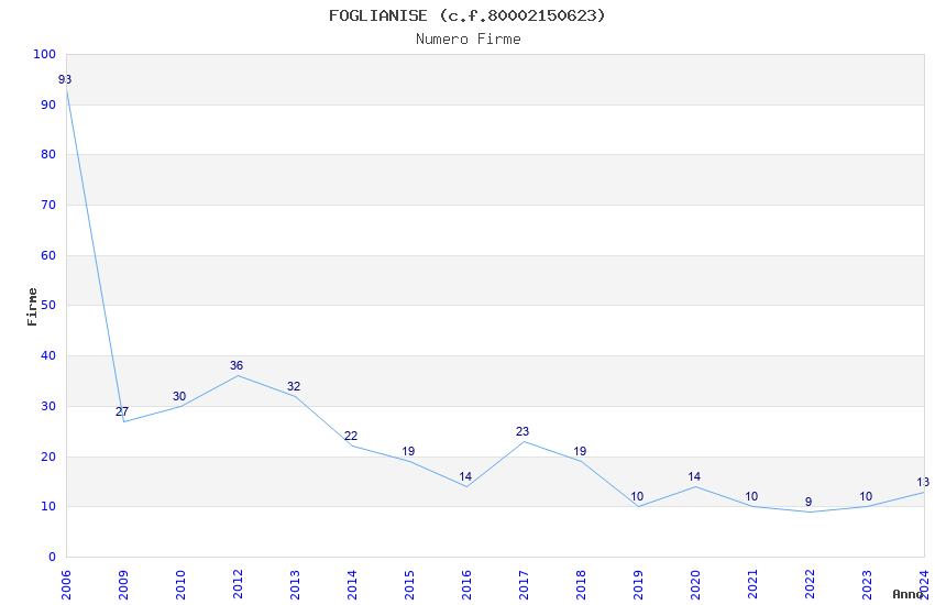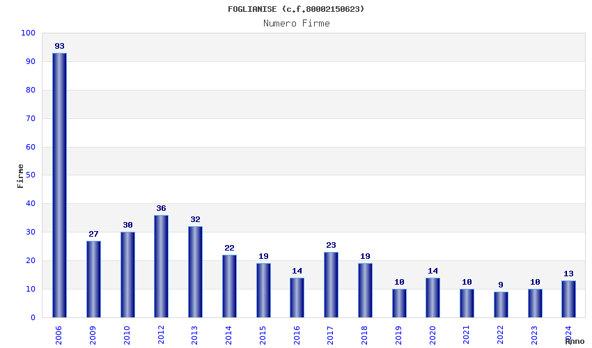 | Anno | Firme | Importi | Media | Naz. | Reg. | Prov. | Comu. |