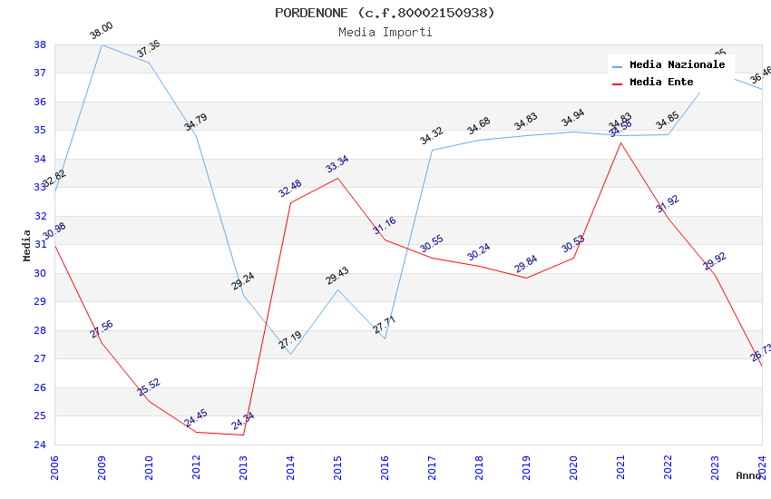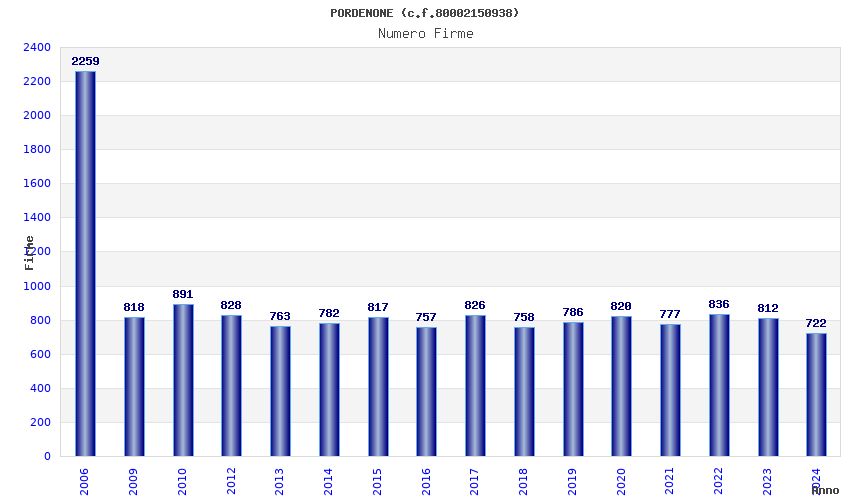 | Anno | Firme | Importi | Media | Naz. | Reg. | Prov. | Comu. |