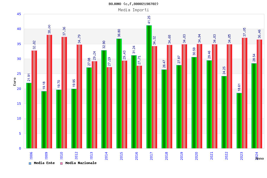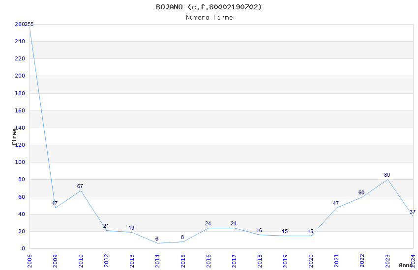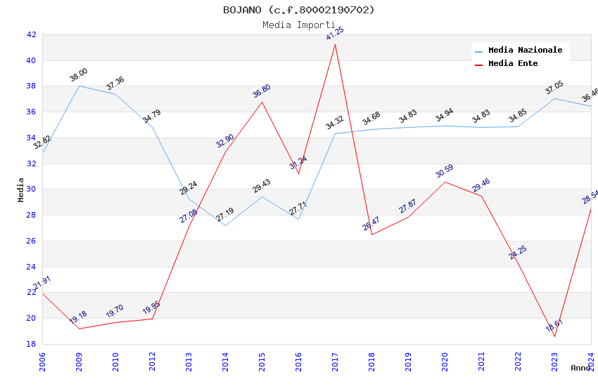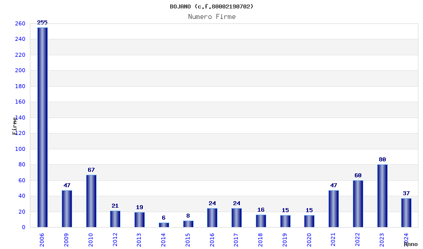 | Anno | Firme | Importi | Media | Naz. | Reg. | Prov. | Comu. |