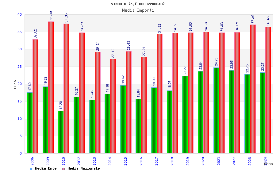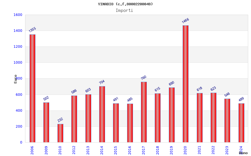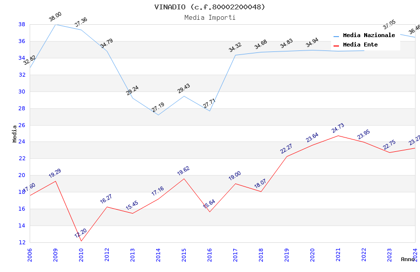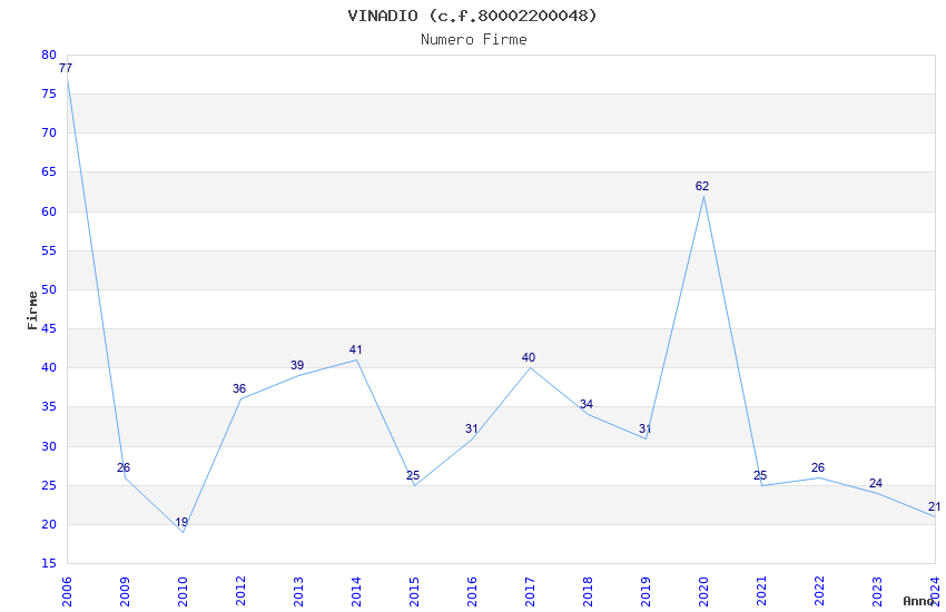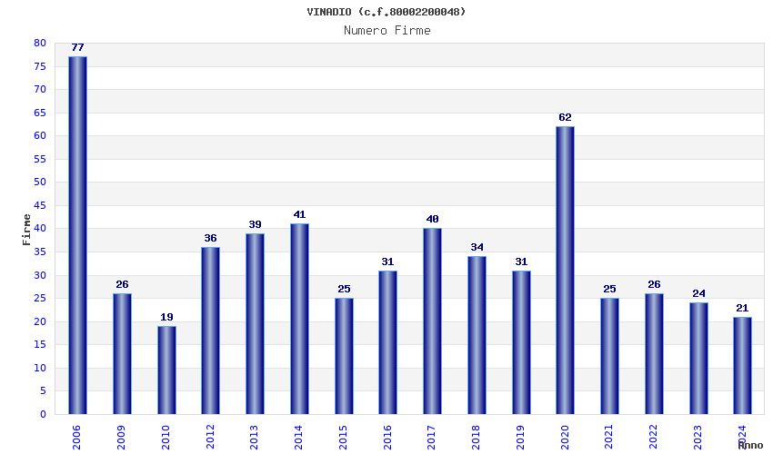 | Anno | Firme | Importi | Media | Naz. | Reg. | Prov. | Comu. |