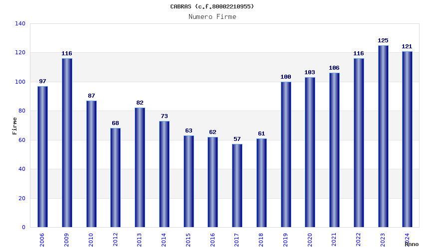 Anno Firme Importi Media Naz. Reg. Prov. Comu.