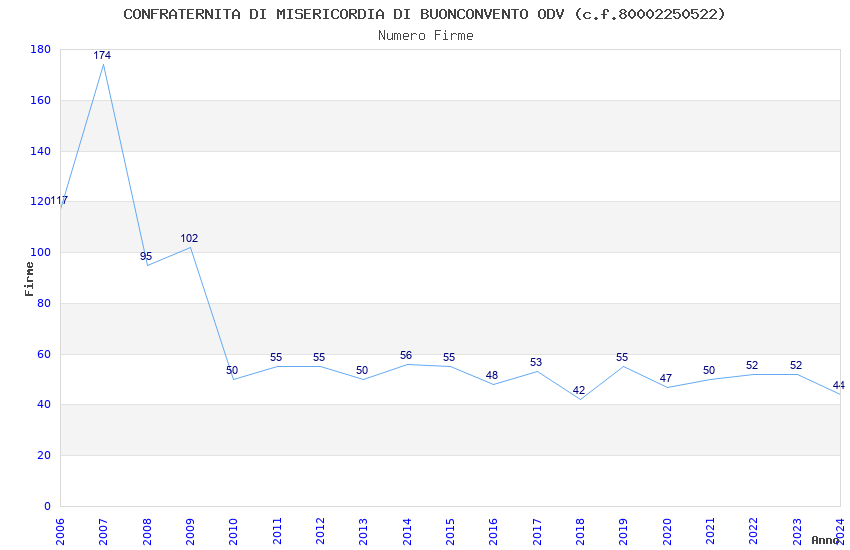 | 2007 | 174 | 3.627,58 | 20,85 | 9.309 | 636 | 70 | 1 |