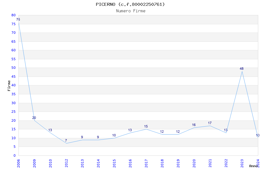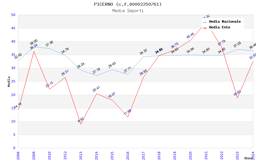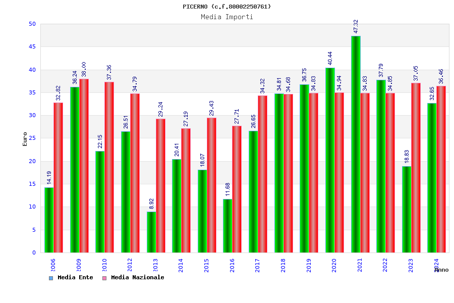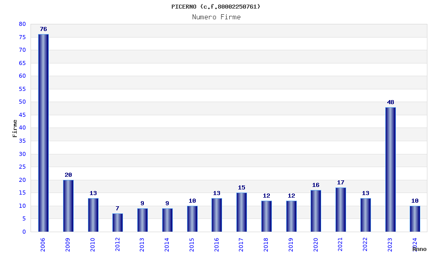 | Anno | Firme | Importi | Media | Naz. | Reg. | Prov. | Comu. |