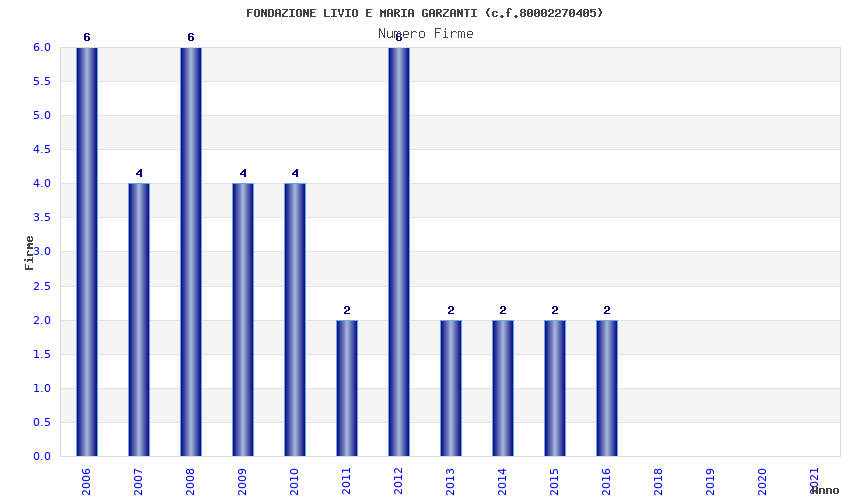 | Anno | Firme | Importi | Media | Naz. | Reg. | Prov. | Comu. |