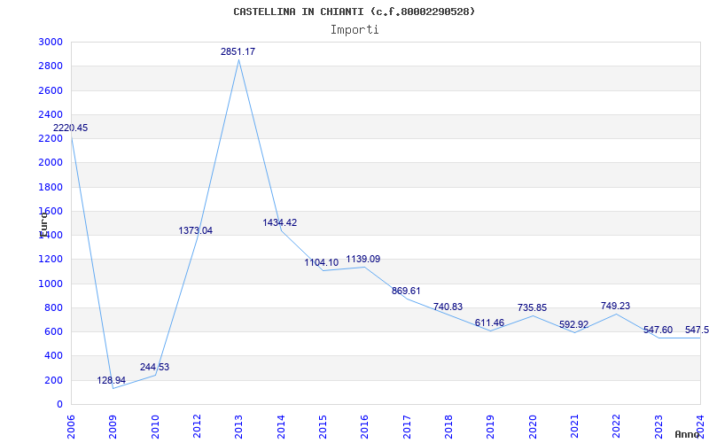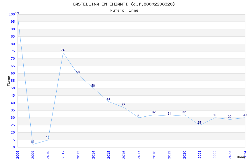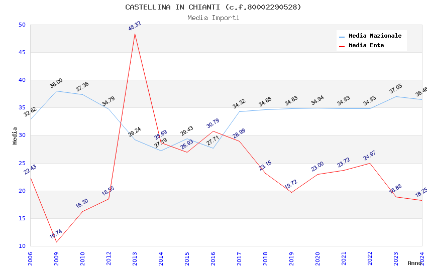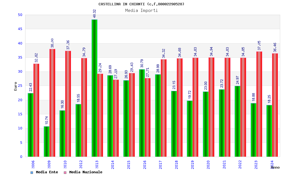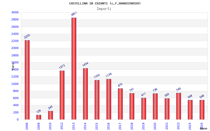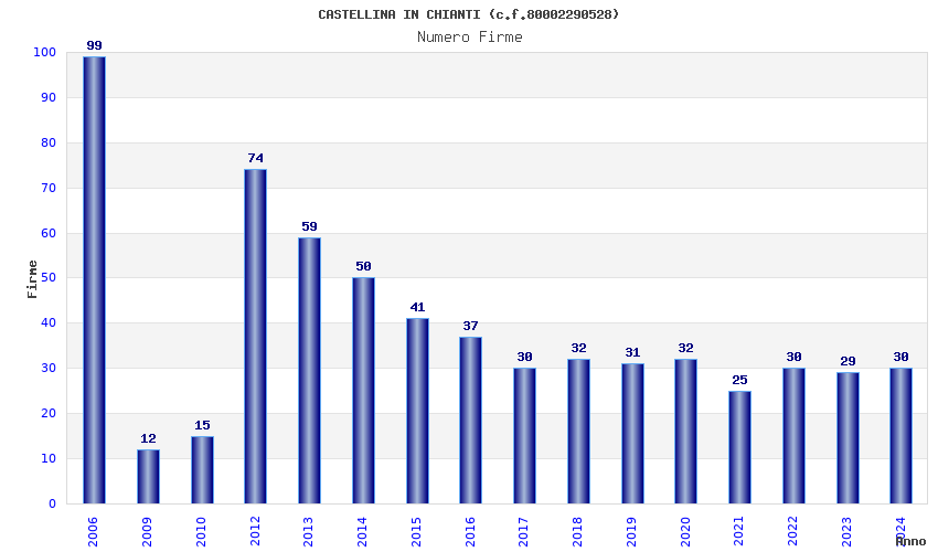 | Anno | Firme | Importi | Media | Naz. | Reg. | Prov. | Comu. |