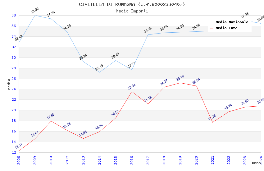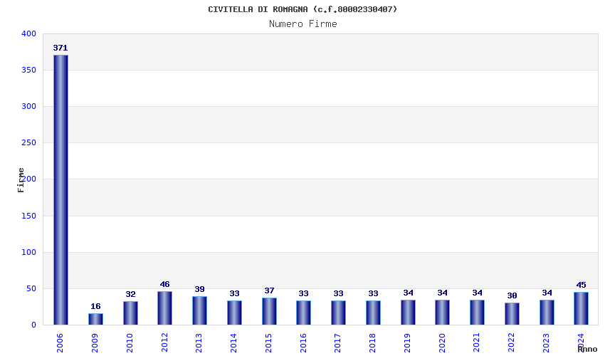 | Anno | Firme | Importi | Media | Naz. | Reg. | Prov. | Comu. |
