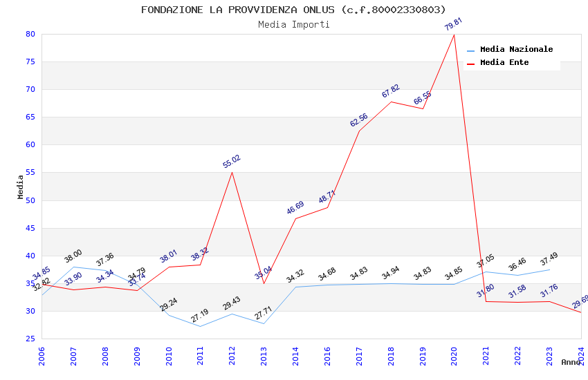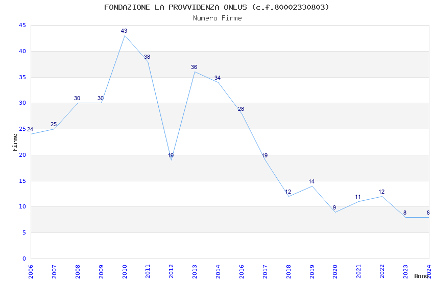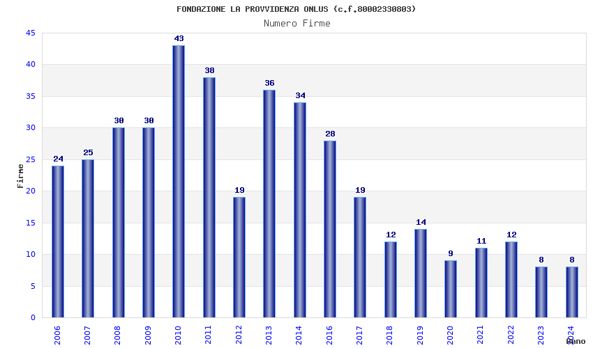 | Anno | Firme | Importi | Media | Naz. | Reg. | Prov. | Comu. |