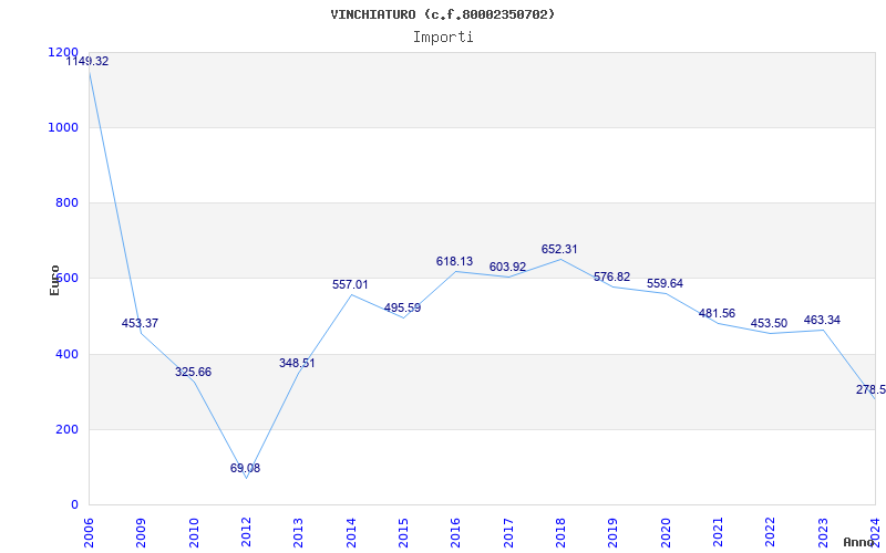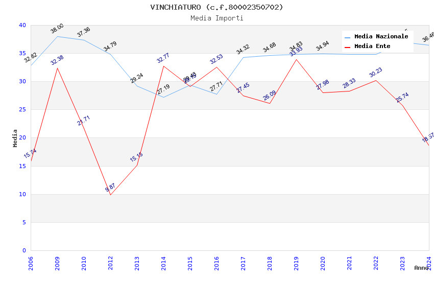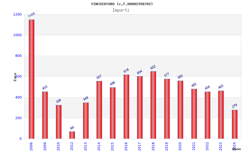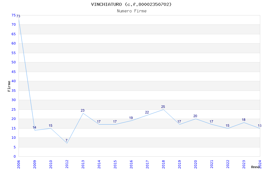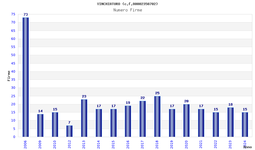 | Anno | Firme | Importi | Media | Naz. | Reg. | Prov. | Comu. |