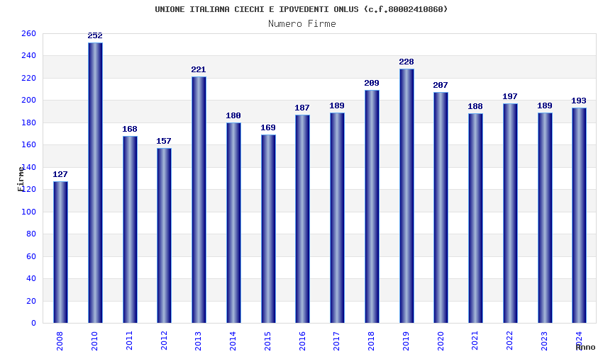 Anno Firme Importi Media Naz. Reg. Prov. Comu.