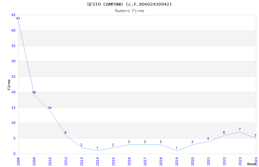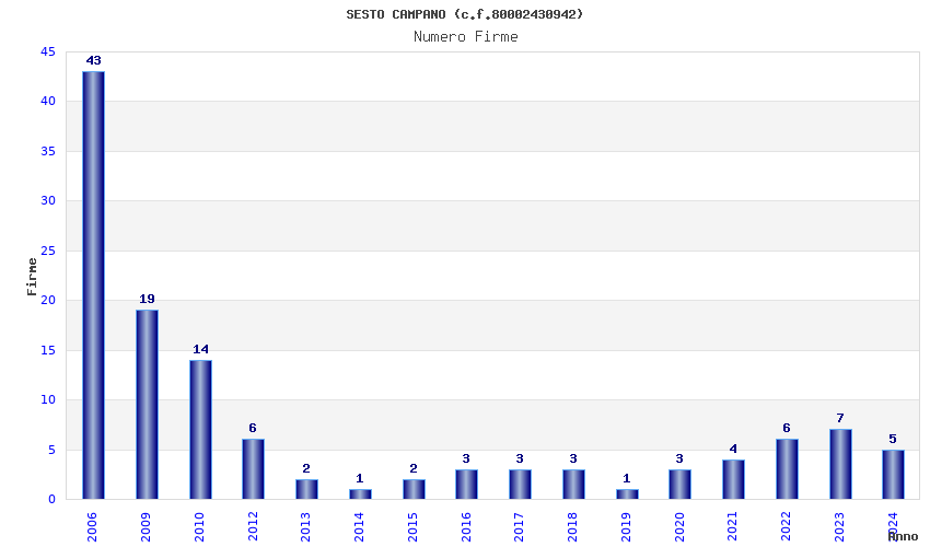 | Anno | Firme | Importi | Media | Naz. | Reg. | Prov. | Comu. |