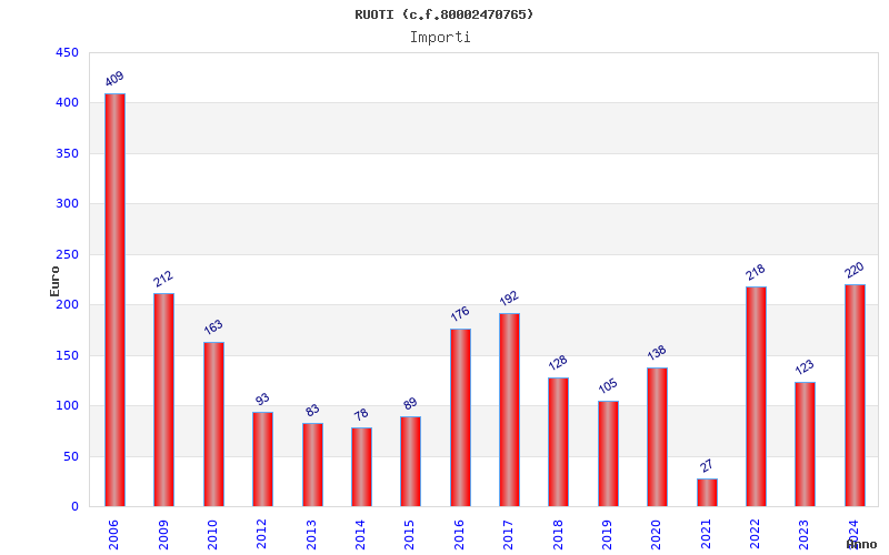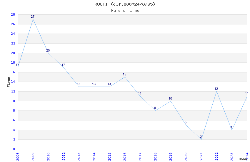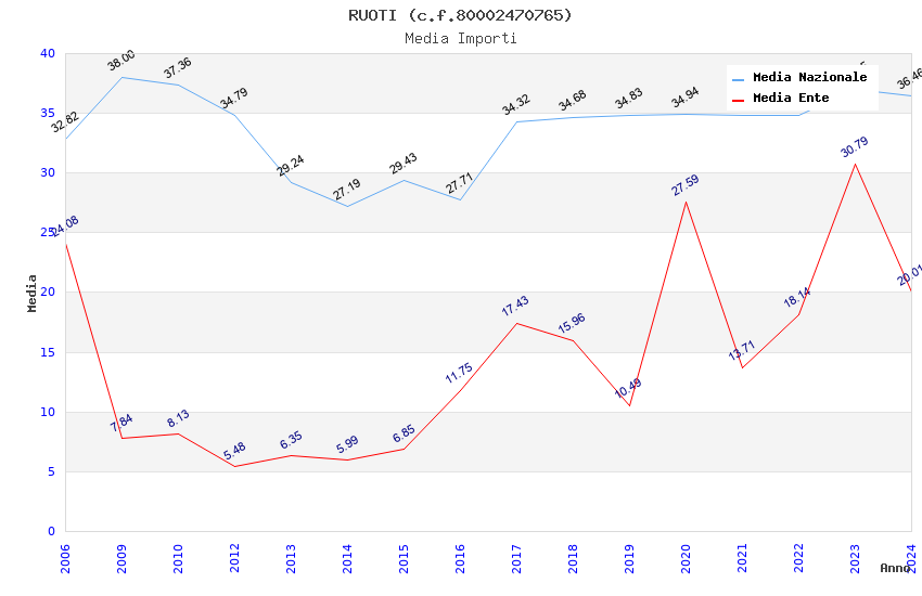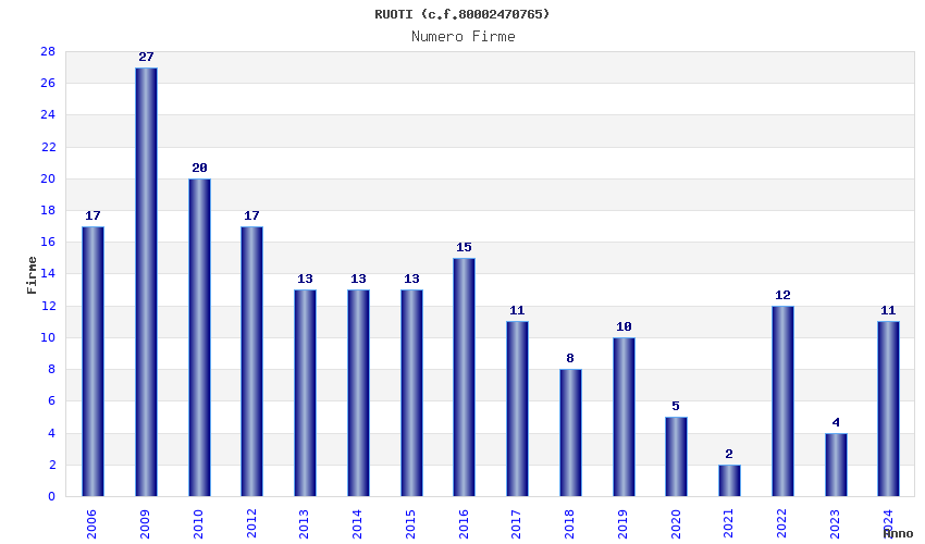 | Anno | Firme | Importi | Media | Naz. | Reg. | Prov. | Comu. |