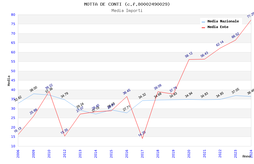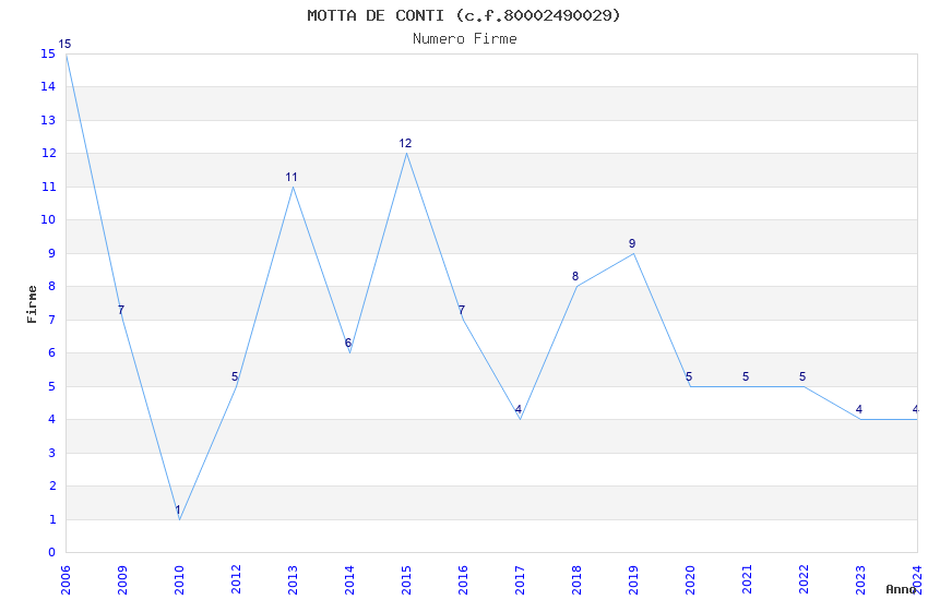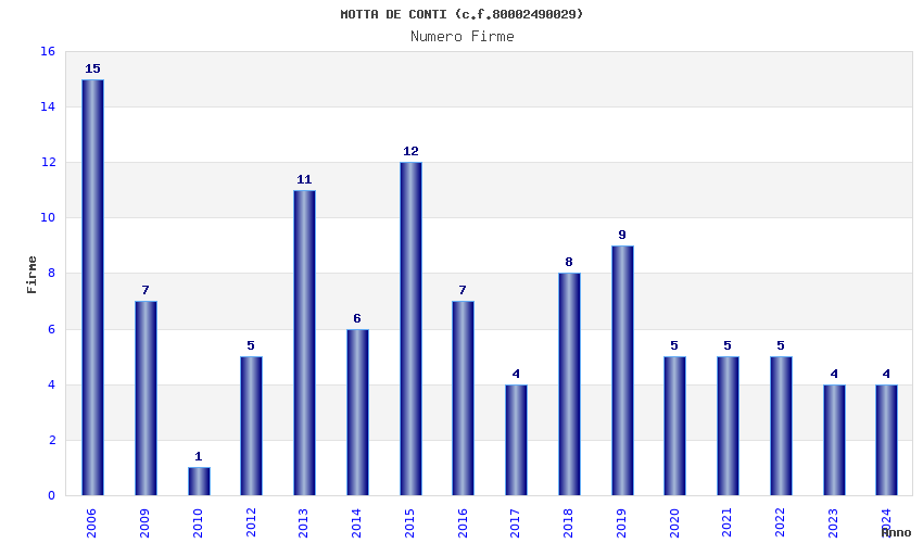 | Anno | Firme | Importi | Media | Naz. | Reg. | Prov. | Comu. |